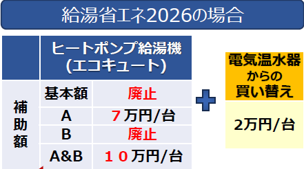 一方2026年の補助金はまだ電気温水器の交換の20,000円の補助金はもちろんあります。