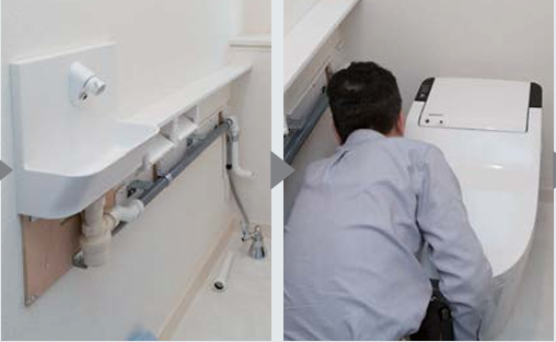 そこへ排水部分をつなげば後からアラウーノ専用手洗いを設置できて便利です。