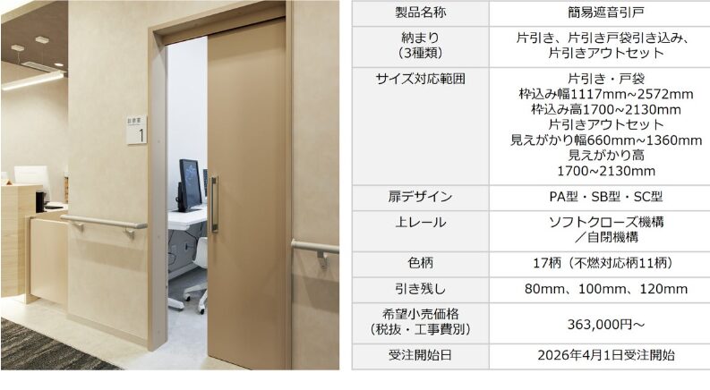 簡易遮音引き戸は2026年4月からの新発売になります。