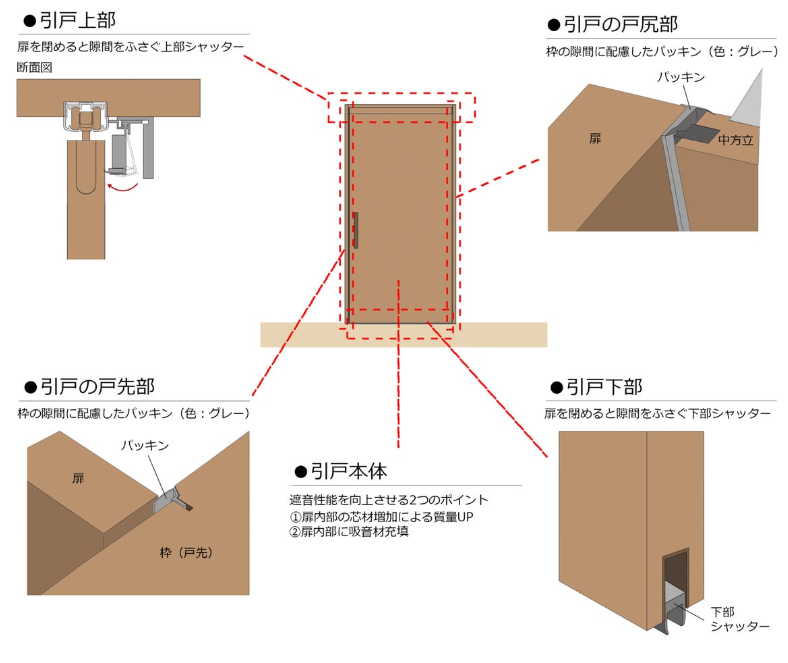 ダイケンの「音配慮引き戸」にもパナソニック同様にパッキンがしてあり、