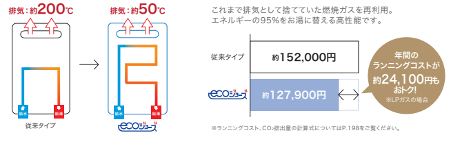 「エコジョーズ」という高効率のガス給湯器に交換した場合ですが