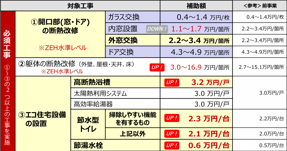 プラスアルファのリフォームで補助金がもらえる、ということです。